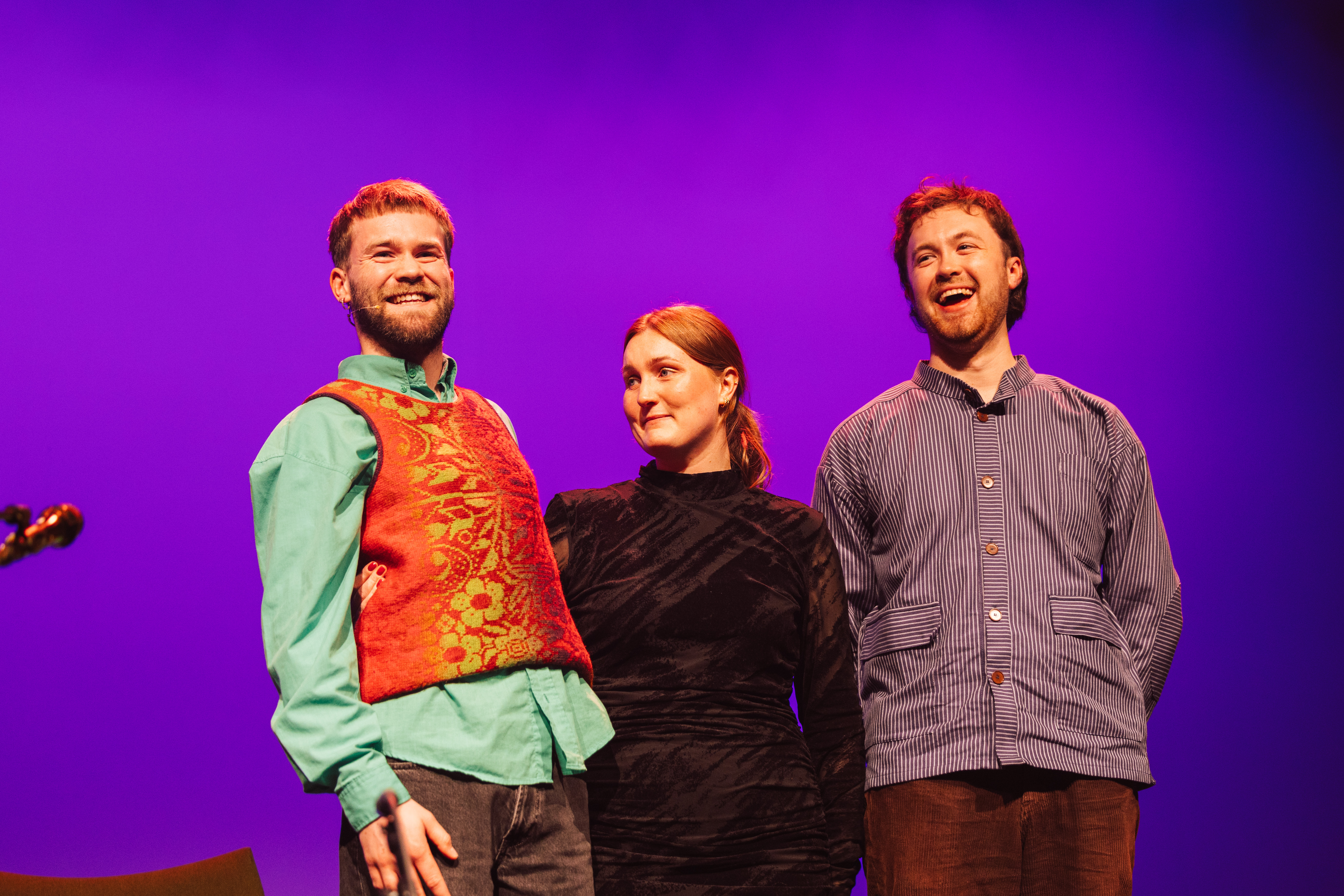 Finalistene i Introfolk 2024: Martin Steinim Brun, Amalie Kinsarvik Tvilde og Åsmund Farstad. Foto: FolkOrg Anders Lillebo